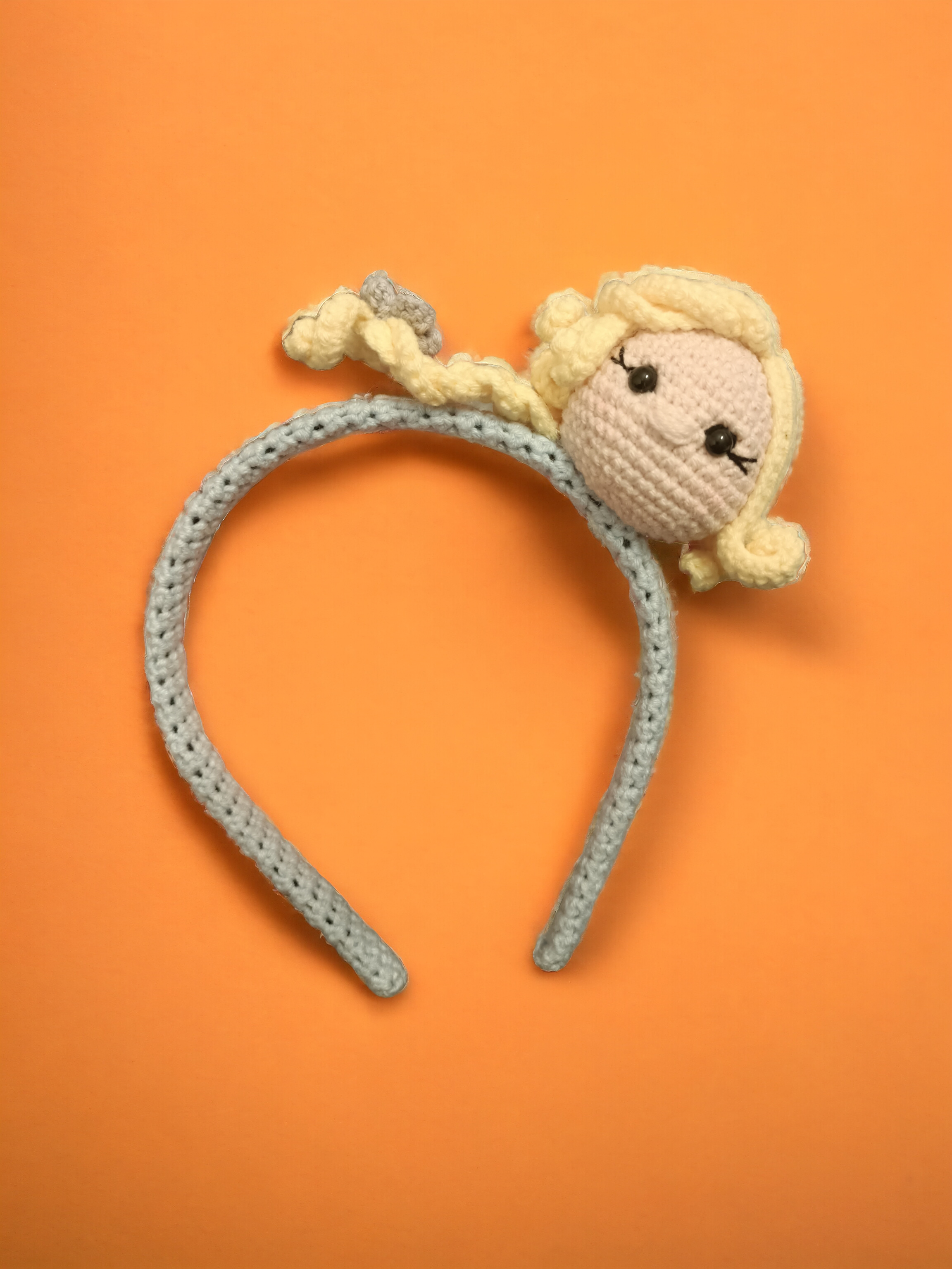 Amigurumi tekniği ile örülmüş Elsa figürlü çocuk tacı