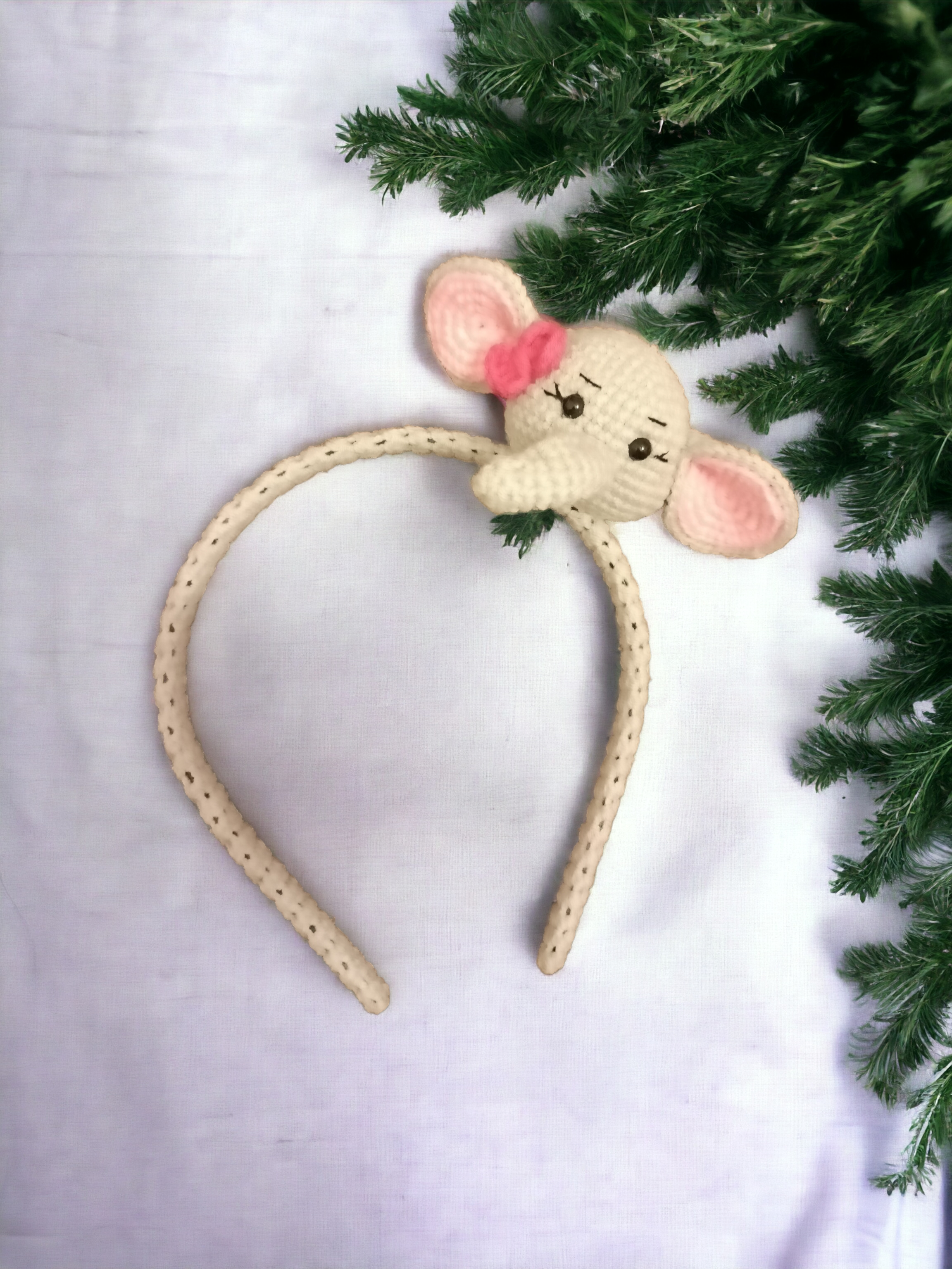 Amigurumi tekniği ile örülmüş fil figürlü çocuk tacı