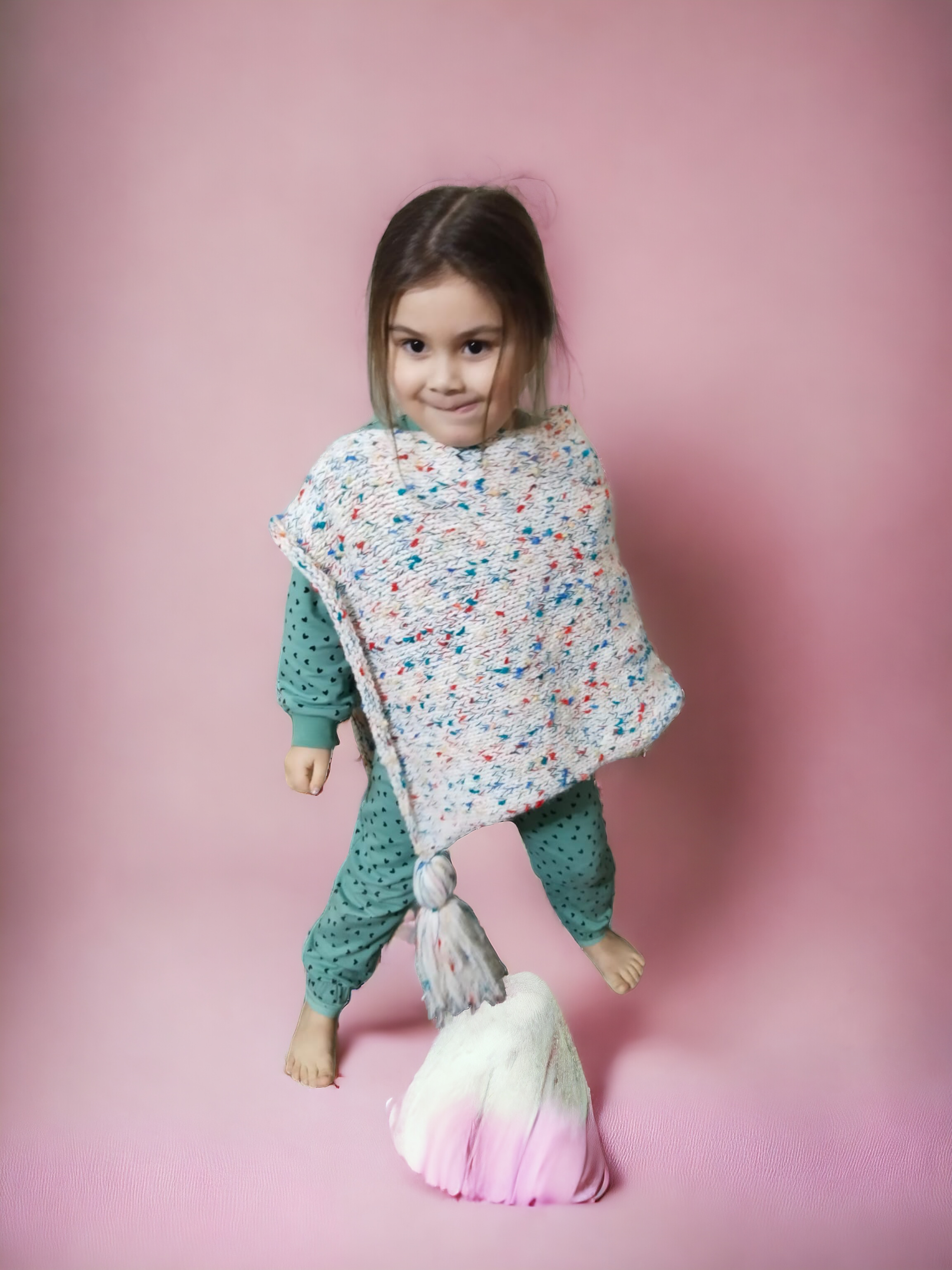 BEYAZ ÜSTÜNE KIRMIZI YEŞİL RENK DETAYLI 2-3 YAŞ ÇOCUK PANÇO