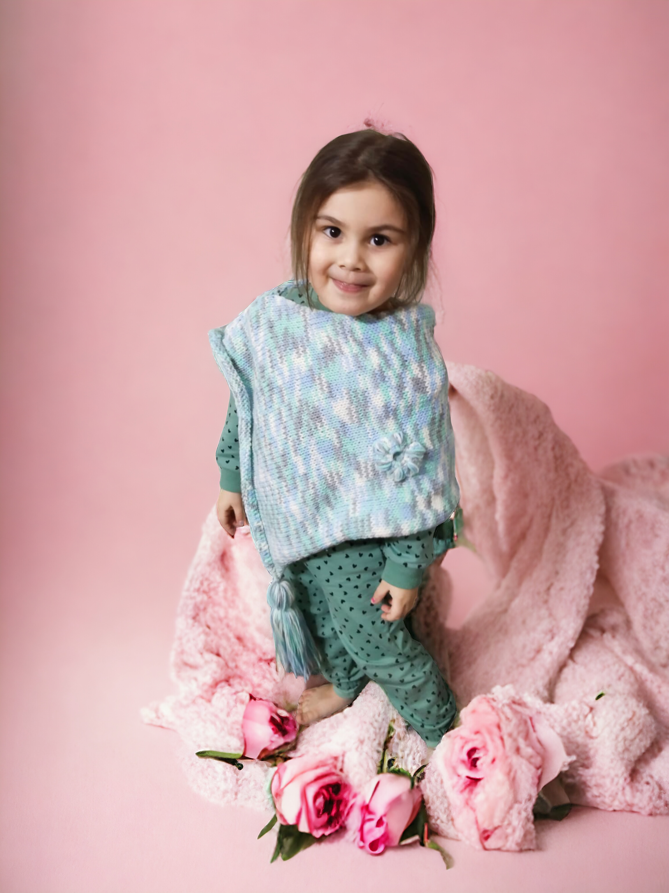 MAVİ ÜSTÜNE KARIŞIK TONDA RENK DETAYLI 2-3 YAŞ ÇOCUK PANÇO
