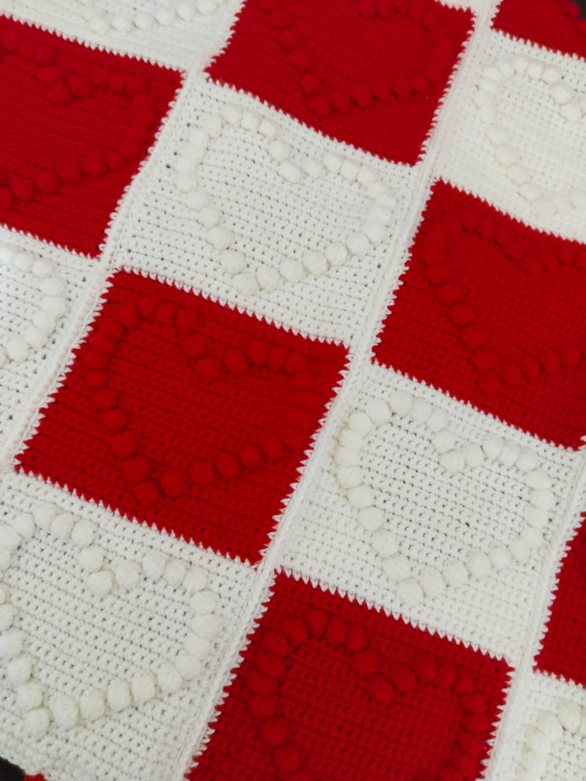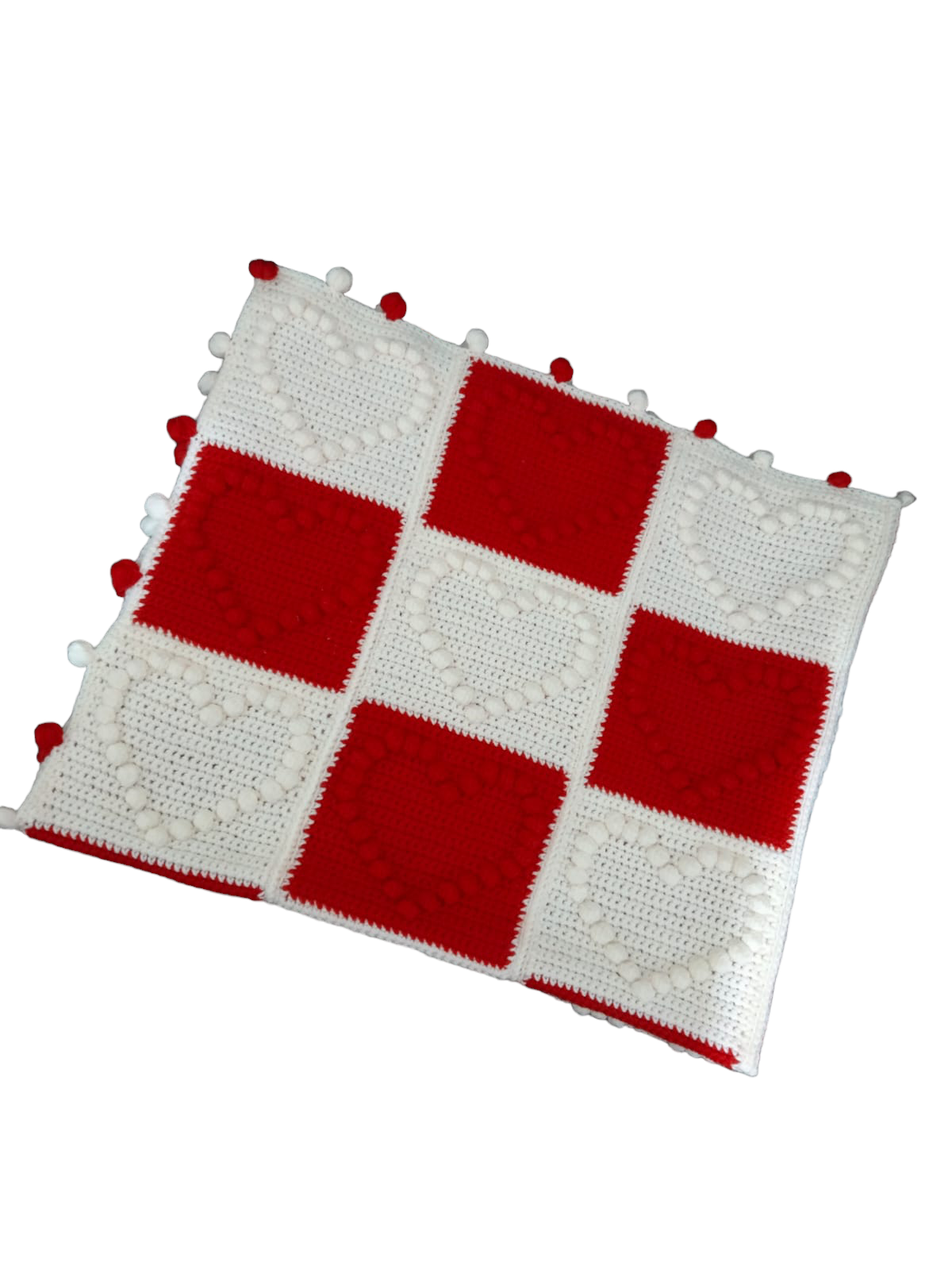 El örgüsüdür. Kalp detaylı popcorn bebek battaniyesi